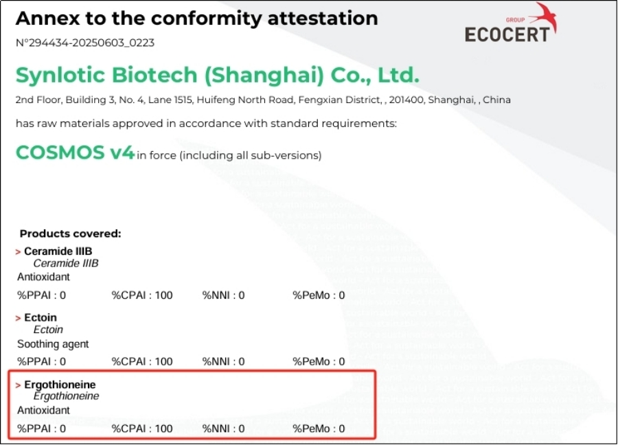 Shanghai Yunluo: Nakuha ni Ergothione ang sertipikasyon ng Cosmos